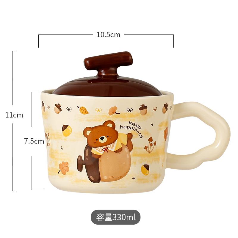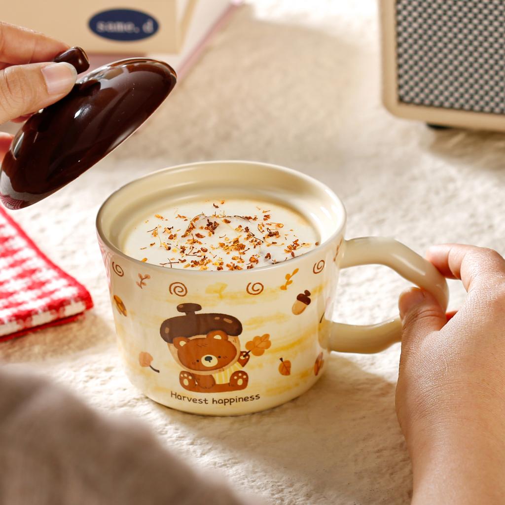 Lovely Chestnut Bear Ceramic Cup with Lid |