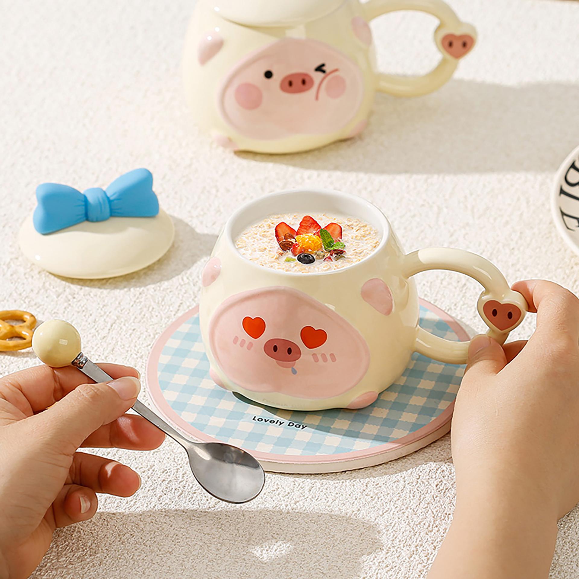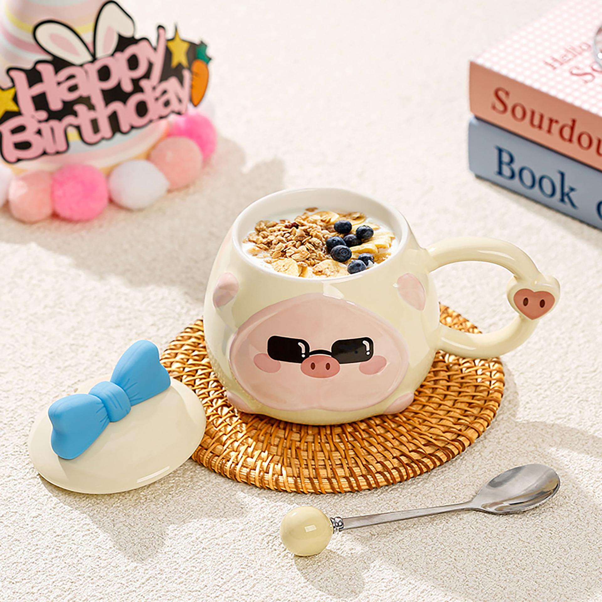 | Production Name | Cute Piggy Ceramic Mug with Lid and Spoon |