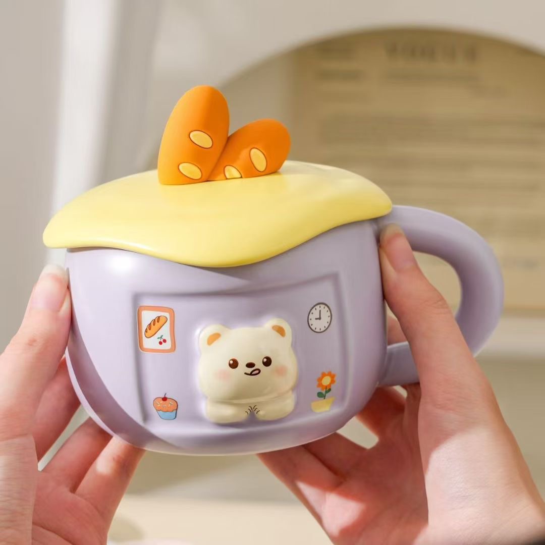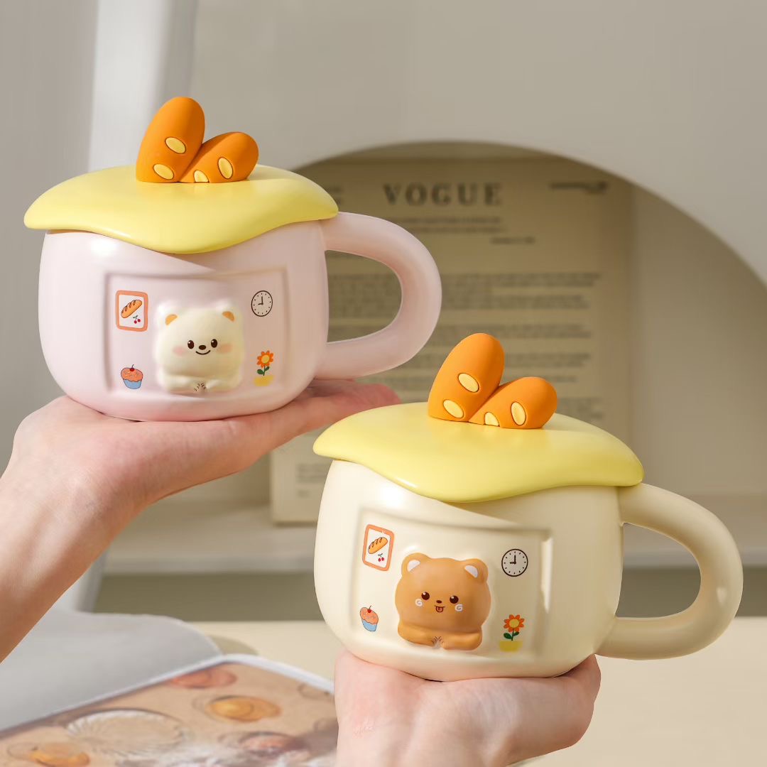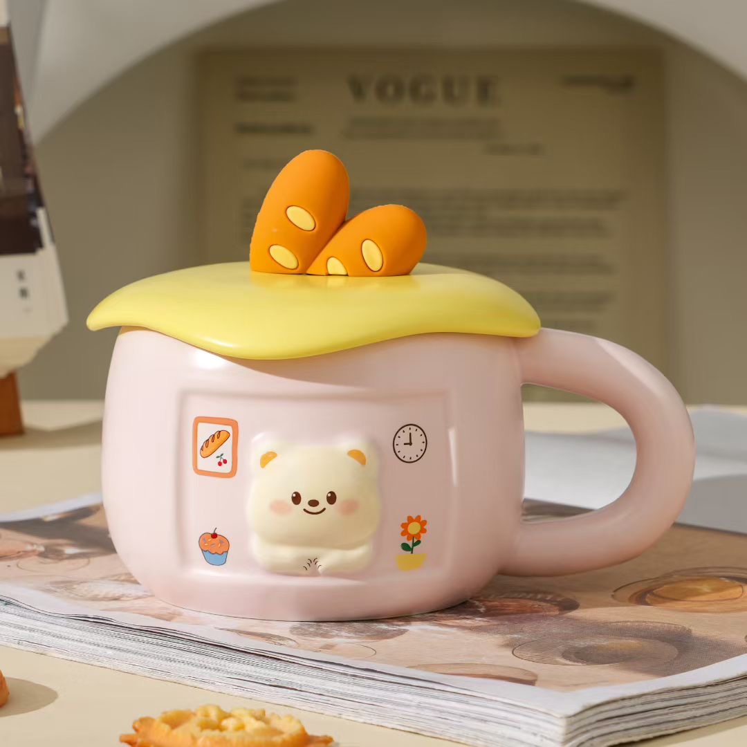 | Production Name | Cheese bread and Bear Ceramic Mug with Lid |