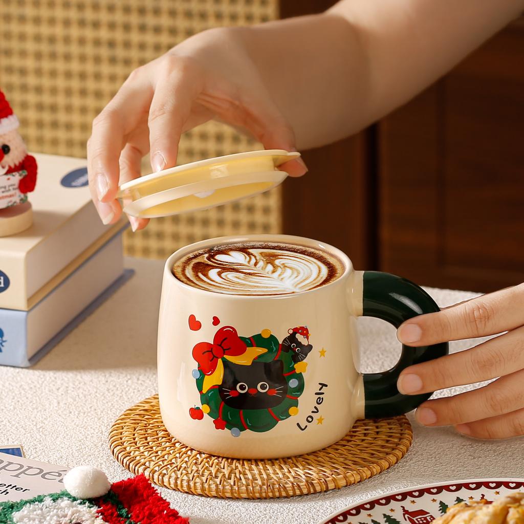 | Production Name | Christmas Cat Ceramic Mug with Lid and Straw |