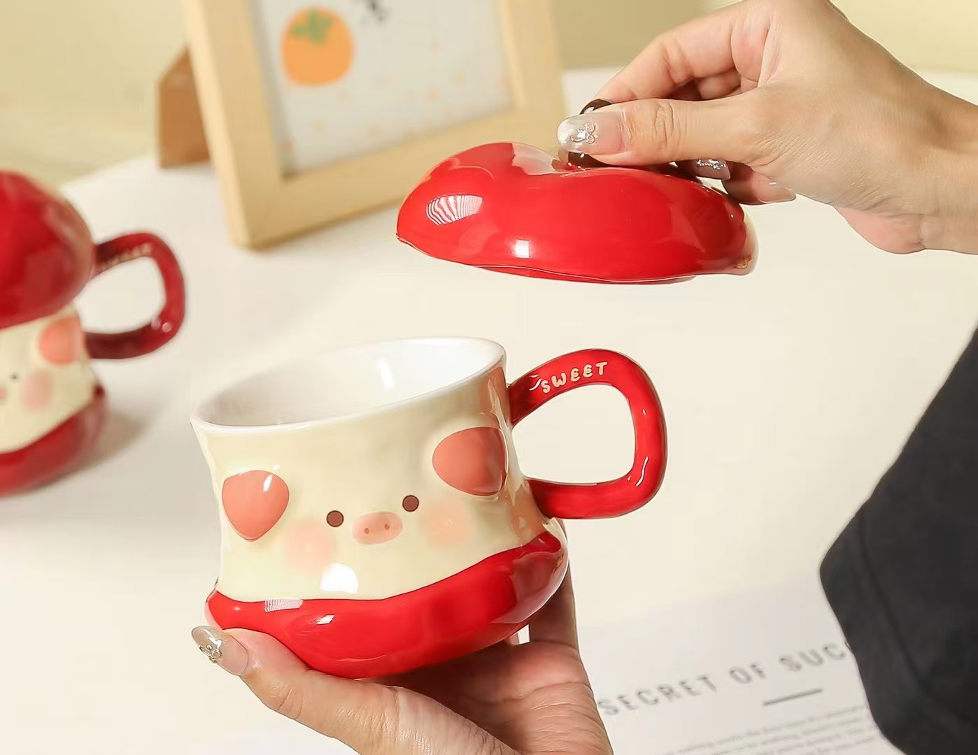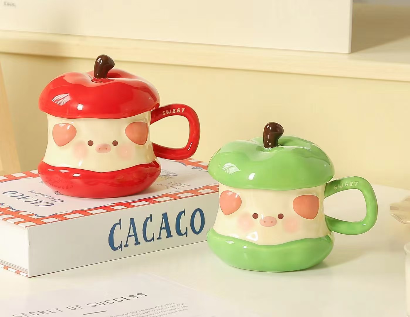 | Production Name | Apple and Piggy Ceramic Mug with Lid |