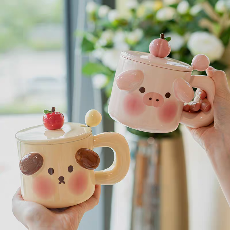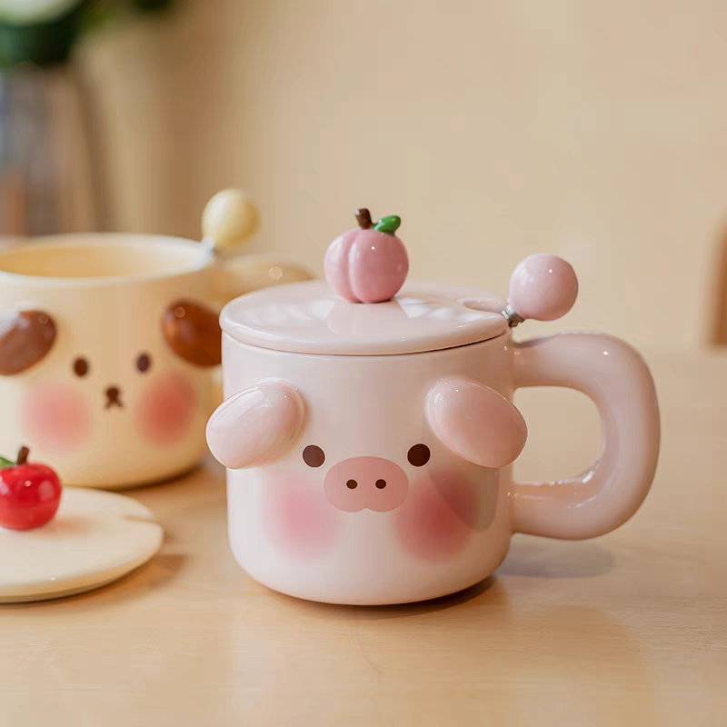 | Production Name | Cartoon Piggy and Puppy Ceramic Mug with Lid and Spoon |