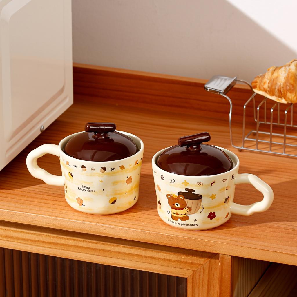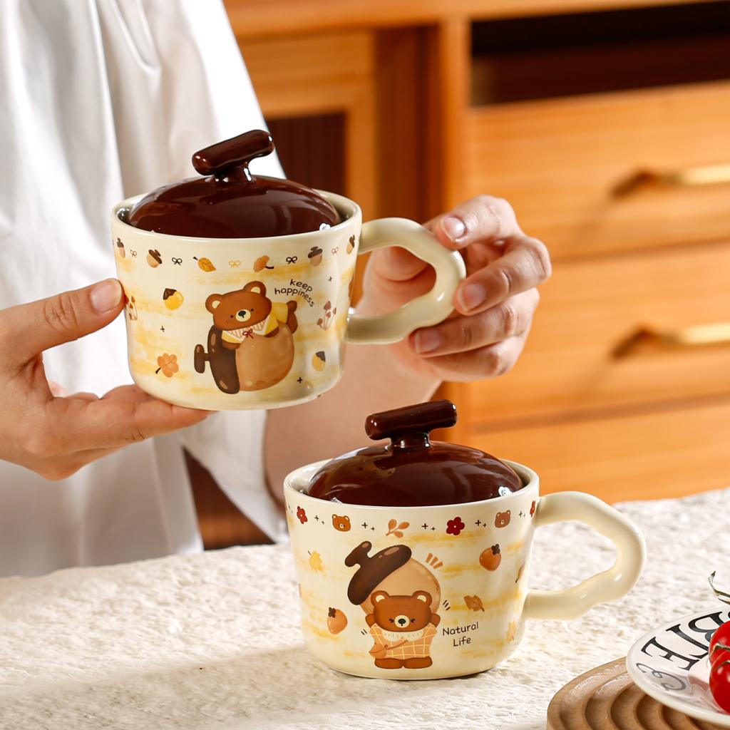 Lovely Chestnut Bear Ceramic Cup with Lid |