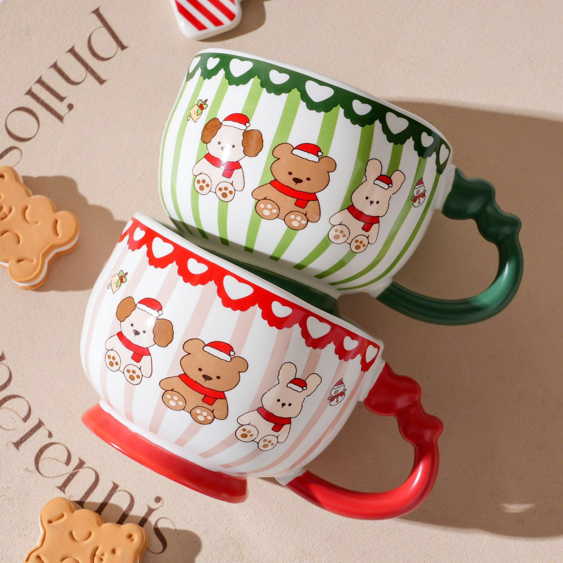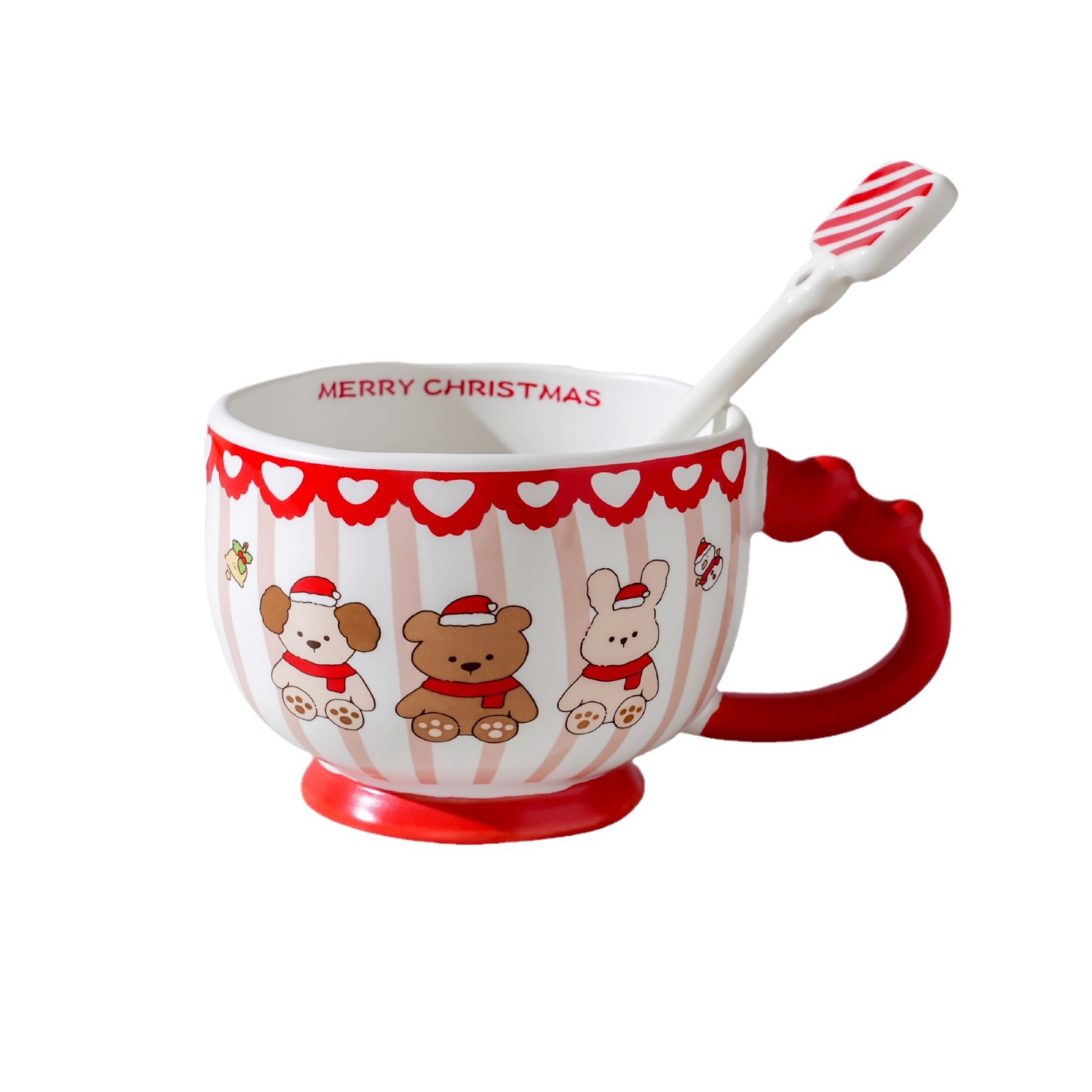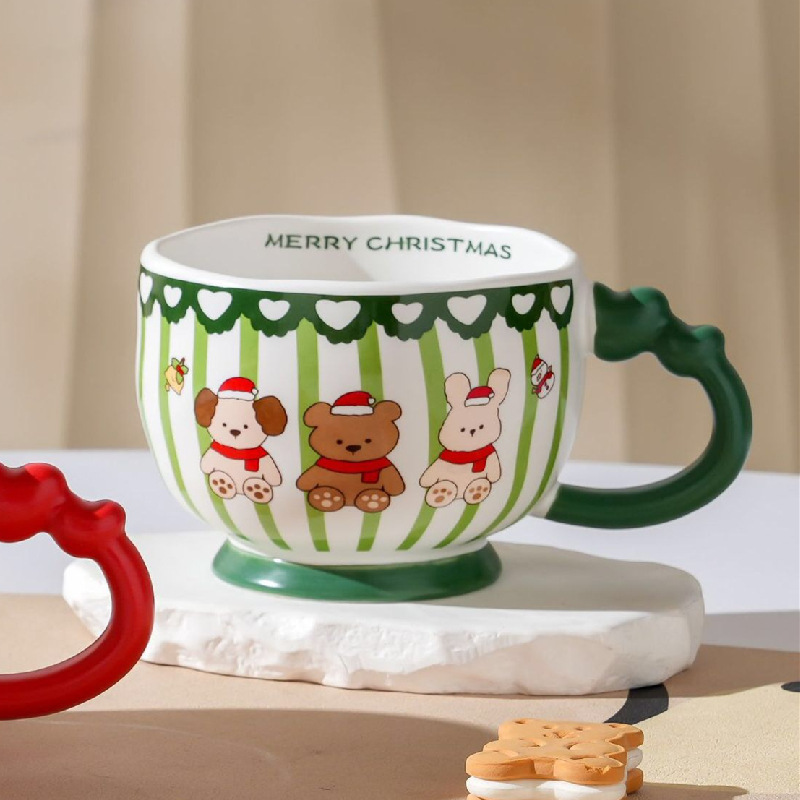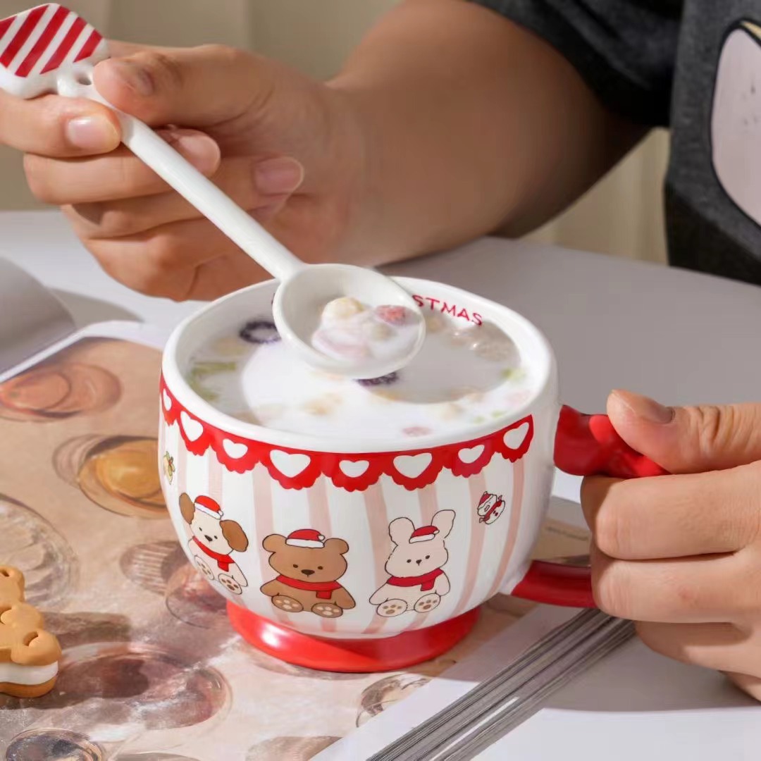复古苹果圣诞陶瓷杯带盖勺礼盒装