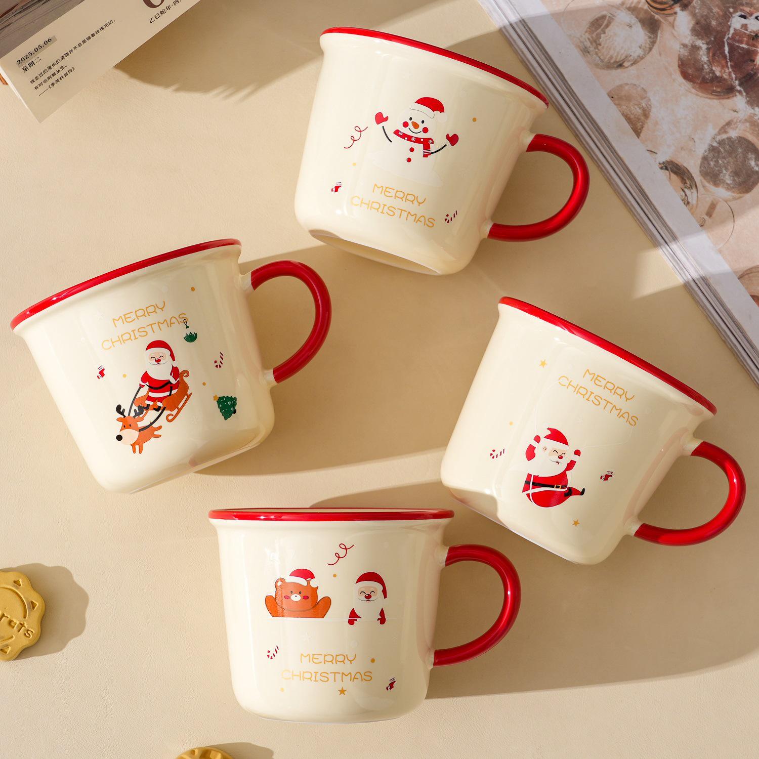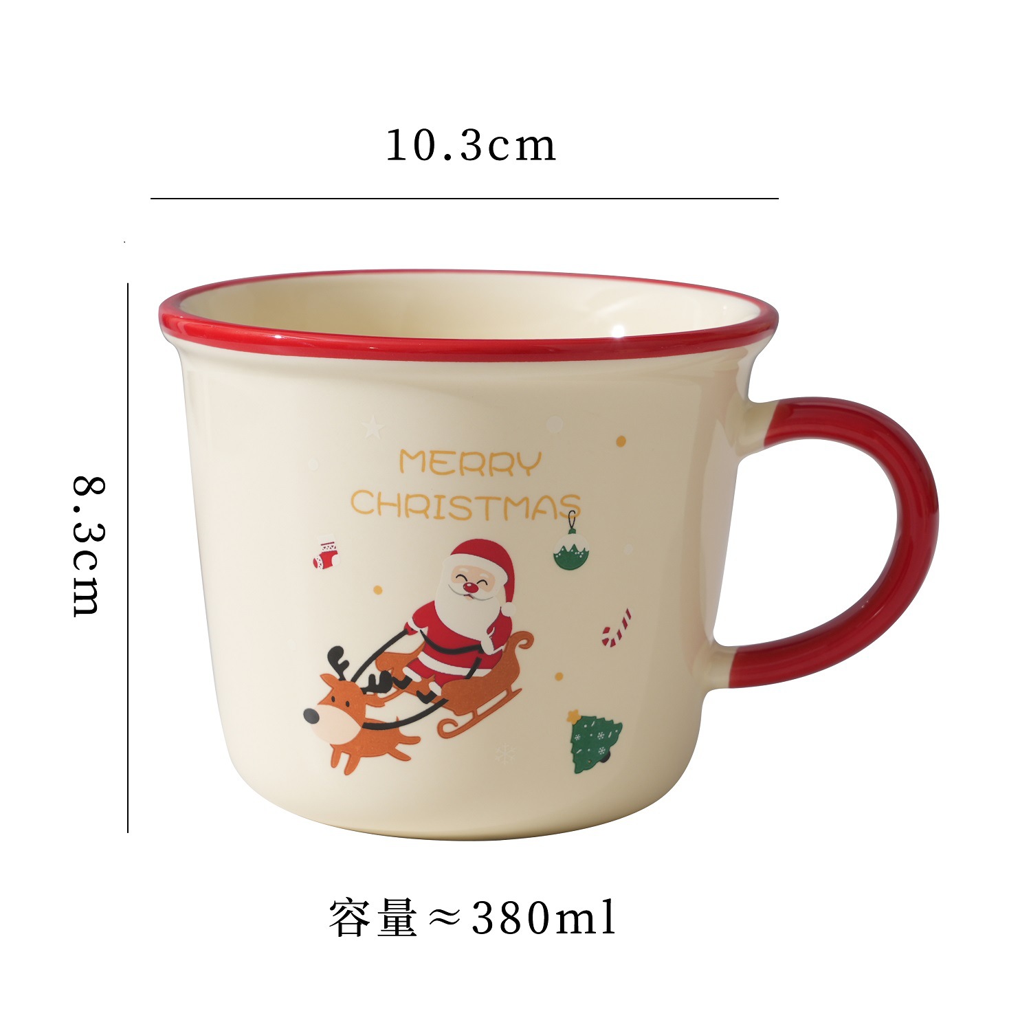 复古苹果圣诞陶瓷杯带盖勺礼盒装