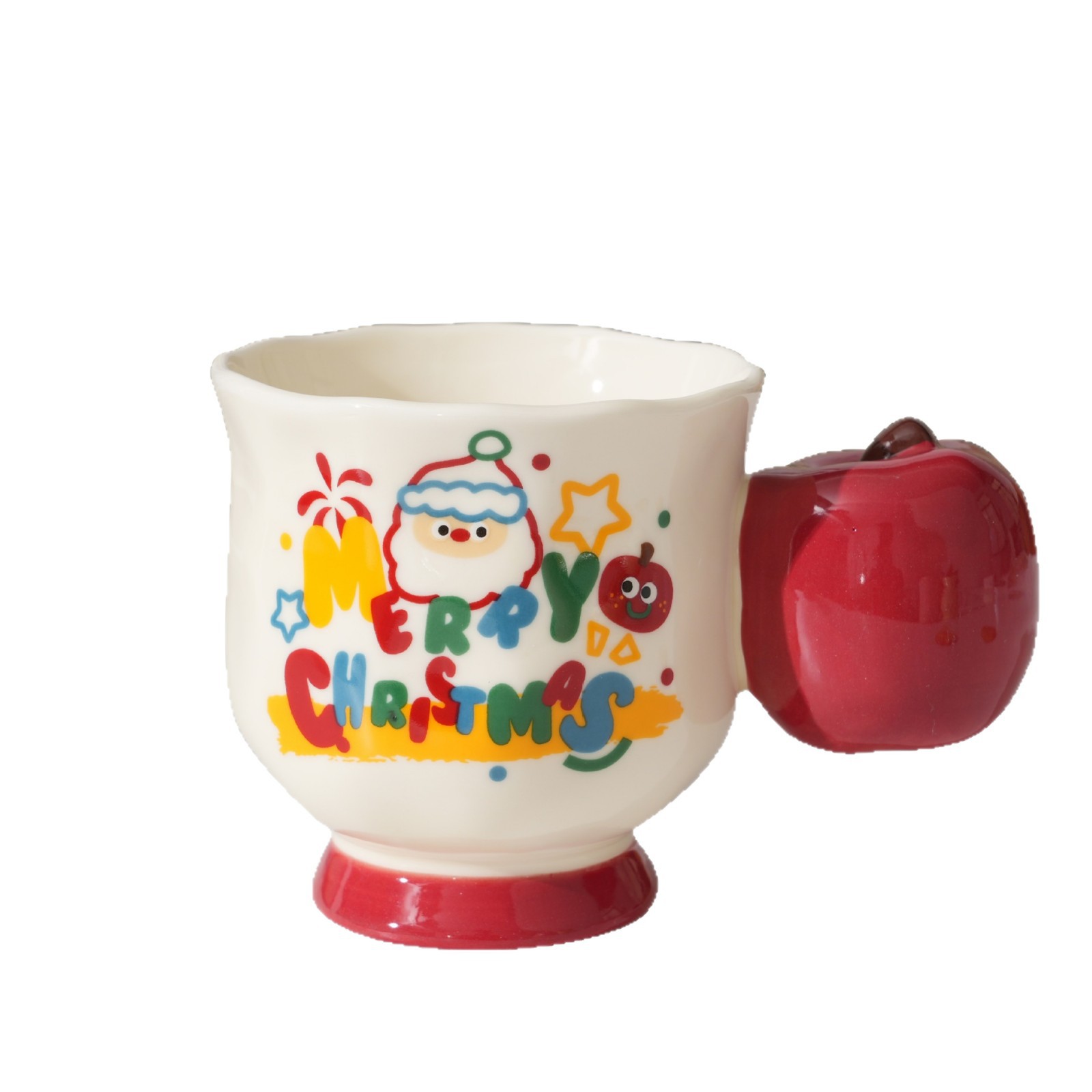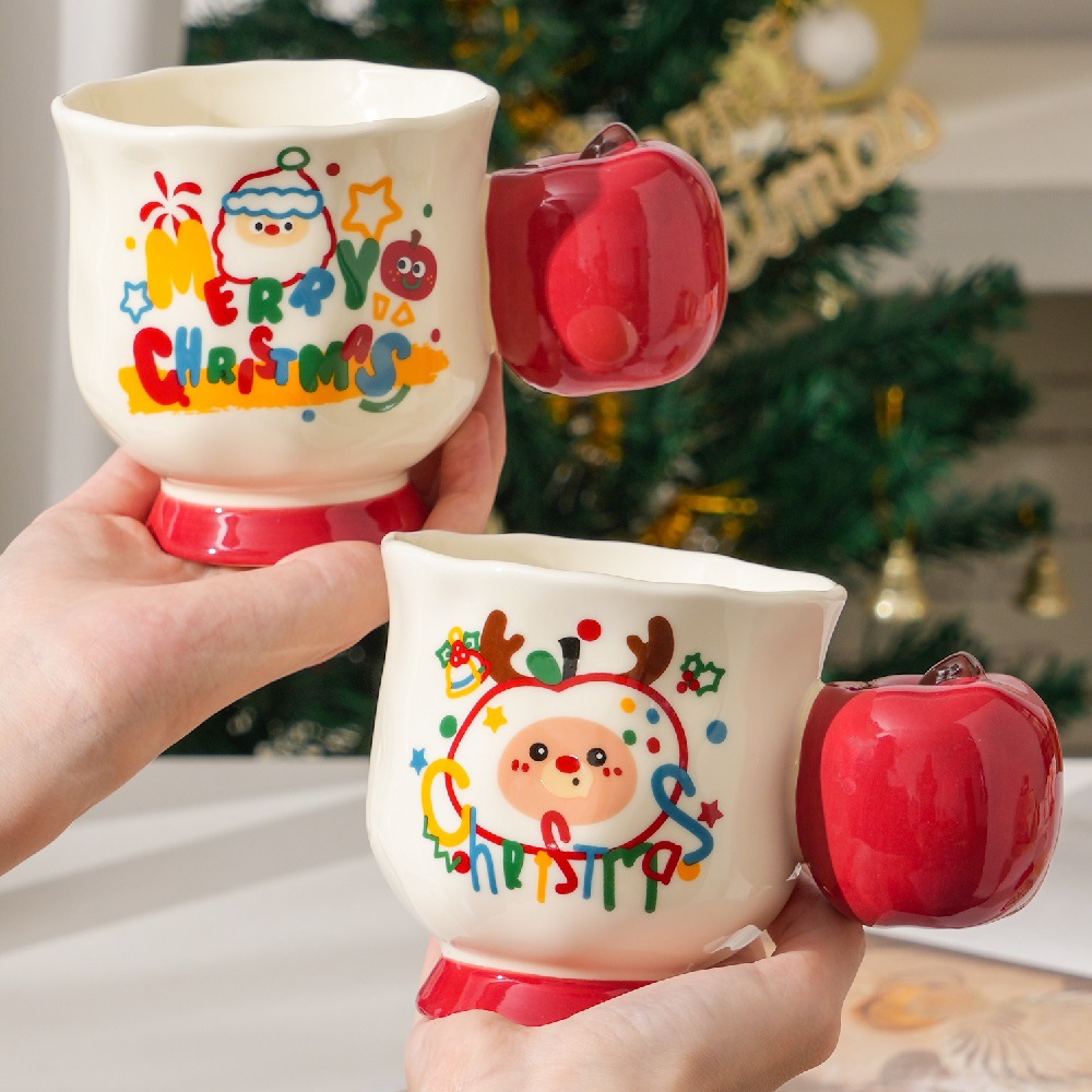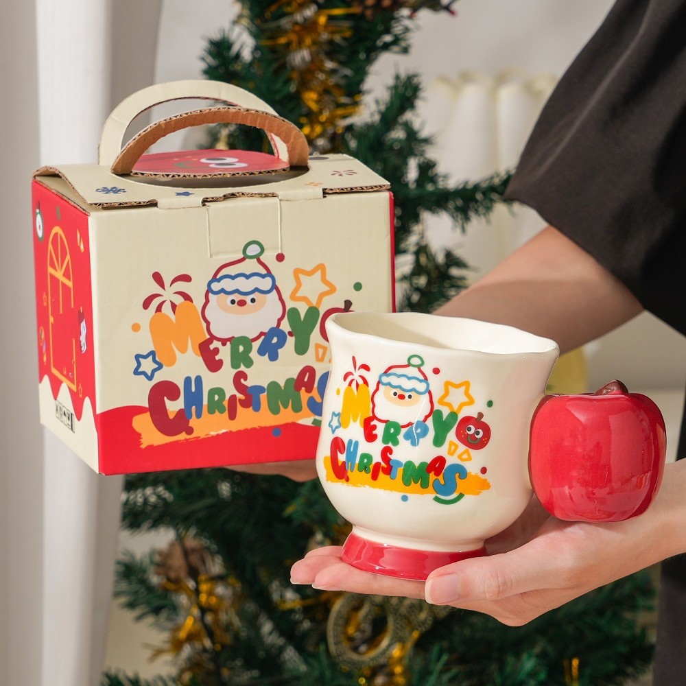 复古苹果圣诞陶瓷杯带盖勺礼盒装
