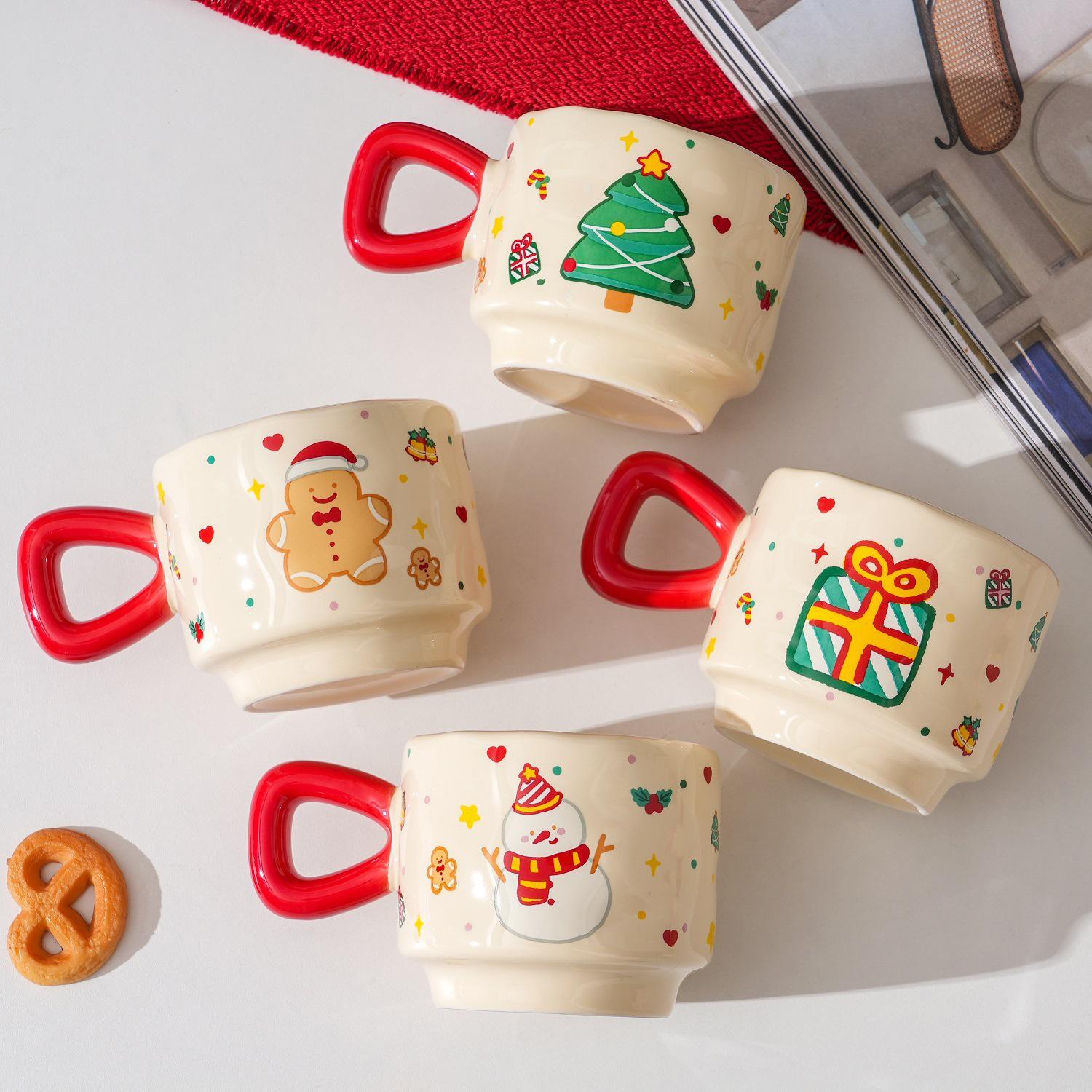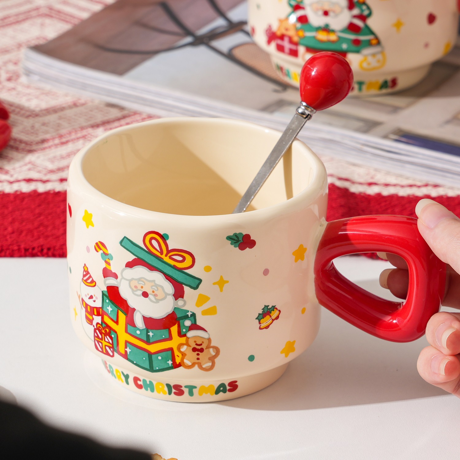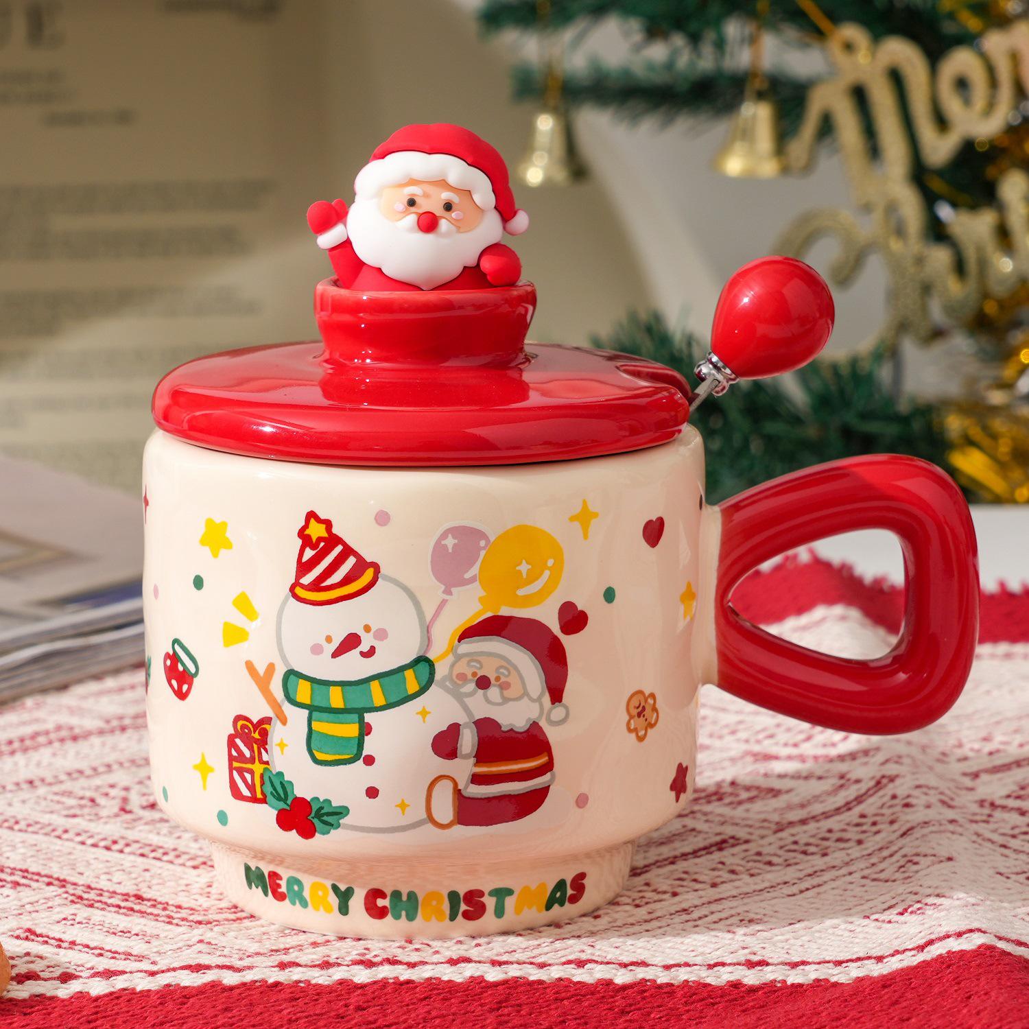 复古苹果圣诞陶瓷杯带盖勺礼盒装